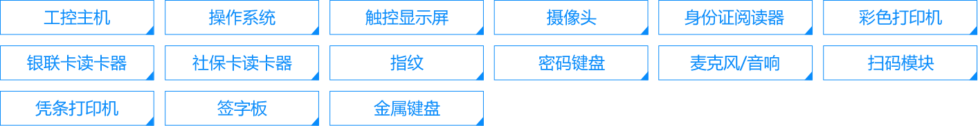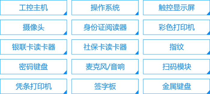 由触摸设备与排队取号软件组成;设备由工业级主机与高强度防爆触摸屏组成;具备定时自动开关机功能,可以根据需求配备二代身份证、IC读卡器、摄像头等外设;为等候者提供取号排队、预约取号、排队查询等功能的人机界面;提供自助取号、选择业务、预约排队、预约排队签到等功能;该模块支持扩展插件;如:二代身份证刷卡功能、磁条/IC读卡功能、打印机控制功能都以插件的方式实现,保证系统扩展性与灵活性。