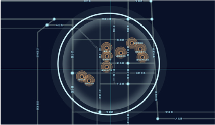 展示项目卖点,互动展示展示区位优势,通过分类展示商圈板块、配套等项目特点。