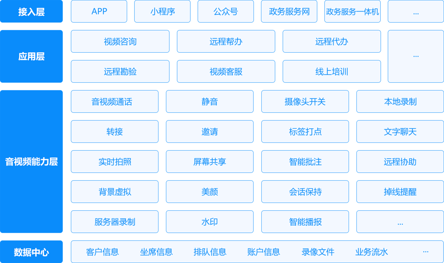 ✓ “远程视频办+智能交互终端”方案可全面入驻乡镇村、社区街道、企业园区等偏远地区或场所,通过视频云柜席,“智能交互终端”放在哪里,相当于办理窗口就在哪里。每个“远程视频办”服务点,可安排专门的作人员负责接待。居民可通过远程设备与窗口业务员进行视频连线,完成业务受理、问题咨询、材料预审和办件预收等。