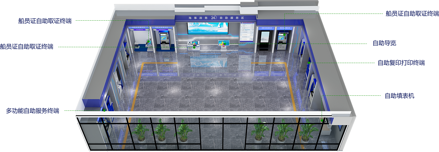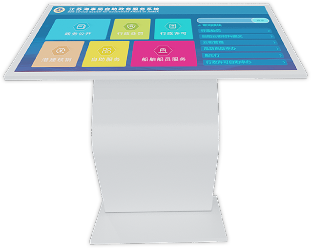 通过触摸大屏,展示3D地图分布,为当事人提供路线指引展示航行通(警)告、通知公告、政策法规、办事事项问答等信息;