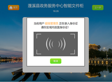 一款可以实现物证、案卷、证件、文件等相关材料的自助存取终端,主要用于公检法、行政服务中心等场所。 由一个主柜和N个副柜组成(可根据实际场所定制),主柜配置工控主机和触摸屏实现智能云柜整体控制和自动开关柜,主柜定制客户端软件,实现身份认证、材料存取等,与系统数据实时互联; 智能云柜提供多种可选配置,有IC卡认证,人脸识别、指纹识别等,产品可带RFID识别; 也可根据实际需要进行其他的个性化定制